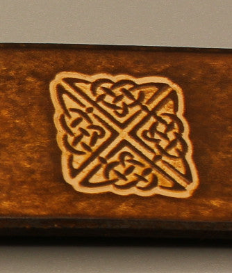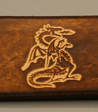 This belt is Fantastic for so many walks of life. The fine details of the dragon are outstanding and the Celtic knot brings a nice formal or ancient feel to the belt. These leather belts are made from thick 8/9oz vegetable tanned cowhide, (approx. 3/16" or 3.4mm), and 1 1/2" wide. We strap them to width, emboss, stain and cut to length all here in my humble shop. For hardware, I use reliable Line 20 snaps to fasten the buckle. This makes for a sturdy hold yet lets you replace or exchange the buckle easily.